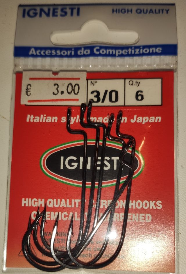 Confezione di ami Ignesti per la pesca. - Misura: 3/0 - Quantità: 6 ami - Materiale: Carbon Steel Pacchetti disponibili: 8