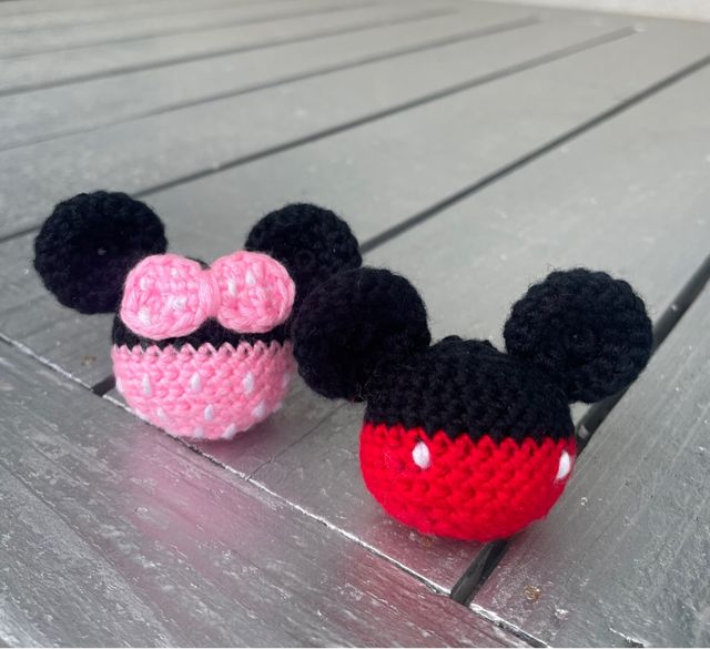 Dettagli del prodottoSet di due adorabili personaggi amigurumi realizzati all'uncinetto, ispirati a Minnie e Topolino. Perfetti come decorazione o piccolo giocattolo.