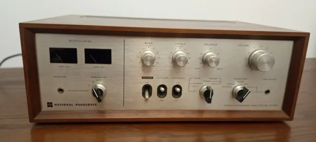 Dettagli del prodottoAmplificatore raro vintage anni '70 "NATIONAL PANASONIC SU-3100 B", pietra miliare del periodo, suono di una bellezza indiscutibile, per amanti del vintage. Tenuto in maniera impeccabile, perfettamente funzionante. Peso circa 8 kg. (informazioni tecniche disponibili in rete). Disponibile a prova in sede.