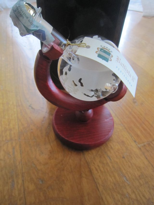 Dettagli del prodottoAmpolla porta grappa in vetro soffiato a forma di mappamondo