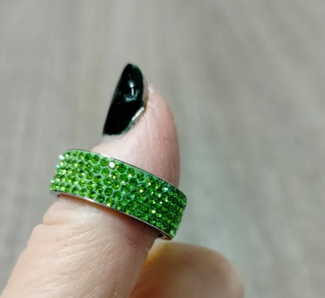 Anello Acciaio con Cristalli Verdi