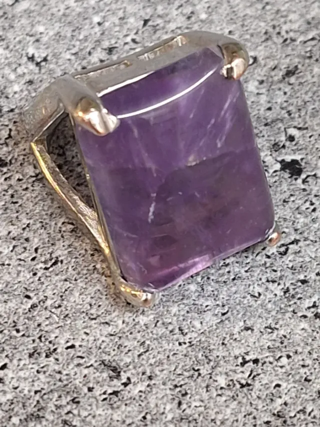 Anello Acciaio Pietra Ametista Grande