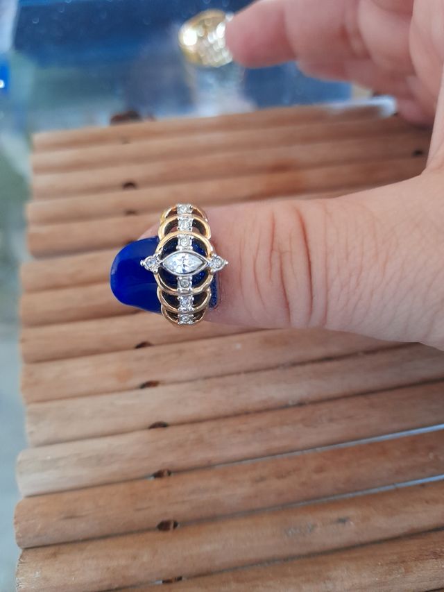 anello in acciaio dorato zircone ovale