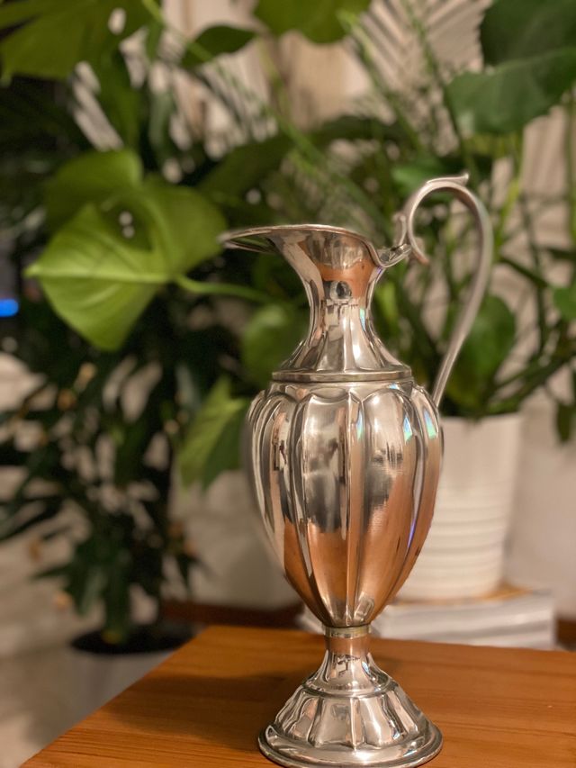 Anfora in peltro, bellissimo centrotavola o vaso ornamentale. Anni ‘60 restaurato e lucidato, in perfette condizioni