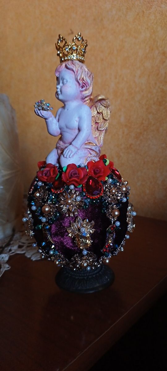 Angelo con sfera coperta con cristalli e perle fatto a mano