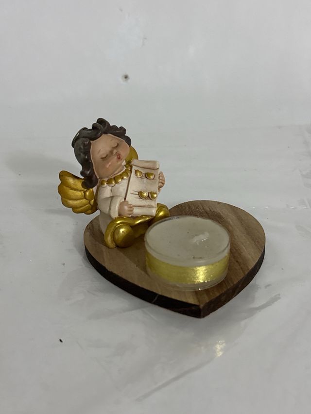 Dettagli del prodottostupenda statua angelo , in ceramica su base in legno a forna di cuore più porta candela . spedisco dall’italia .