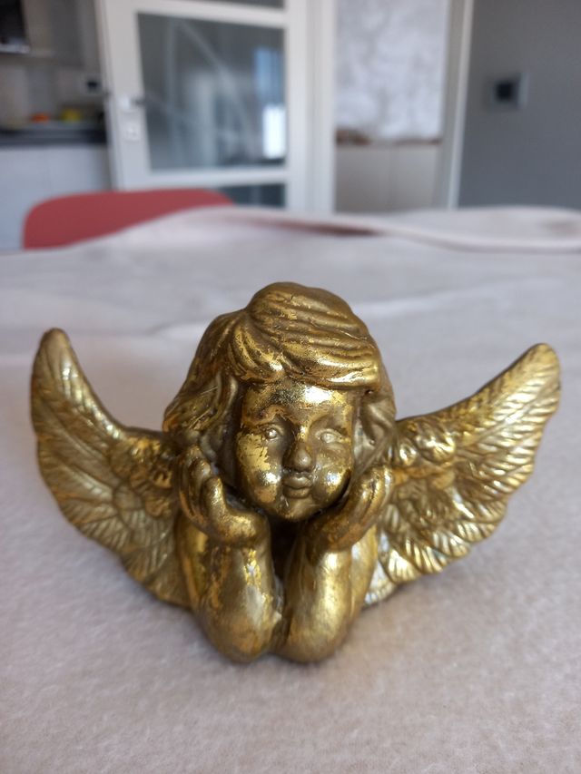 Soprammobile ad angioletto dorato anticato in ceramica come nuovo