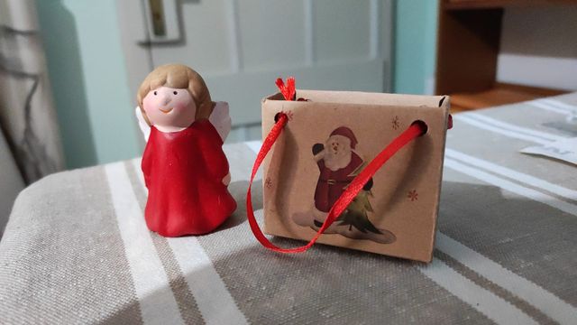 Angioletto in ceramica rosso e beige.