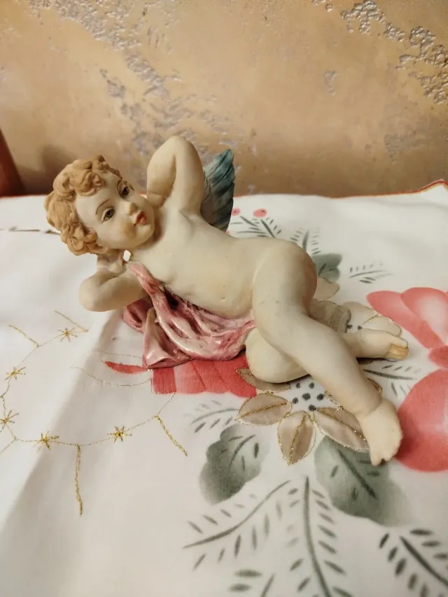 Delicato angioletto realizzato in polvere di marmo. - Materiale: polvere di marmo. - Design: angelo con ali.