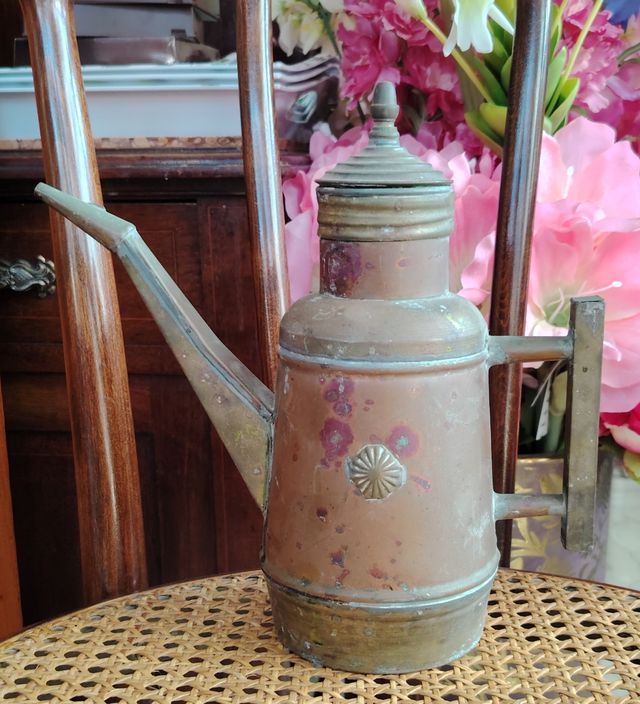 Oliera in rame, antica, realizzata in maniera artigianale, è alta 24,5 cm