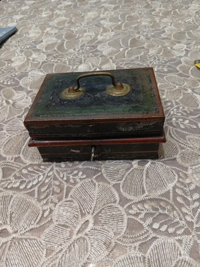 Dettagli del prodottoVecchia scatola vintage portaoggetti in metallo, per conservare oggetti di valore o soldi