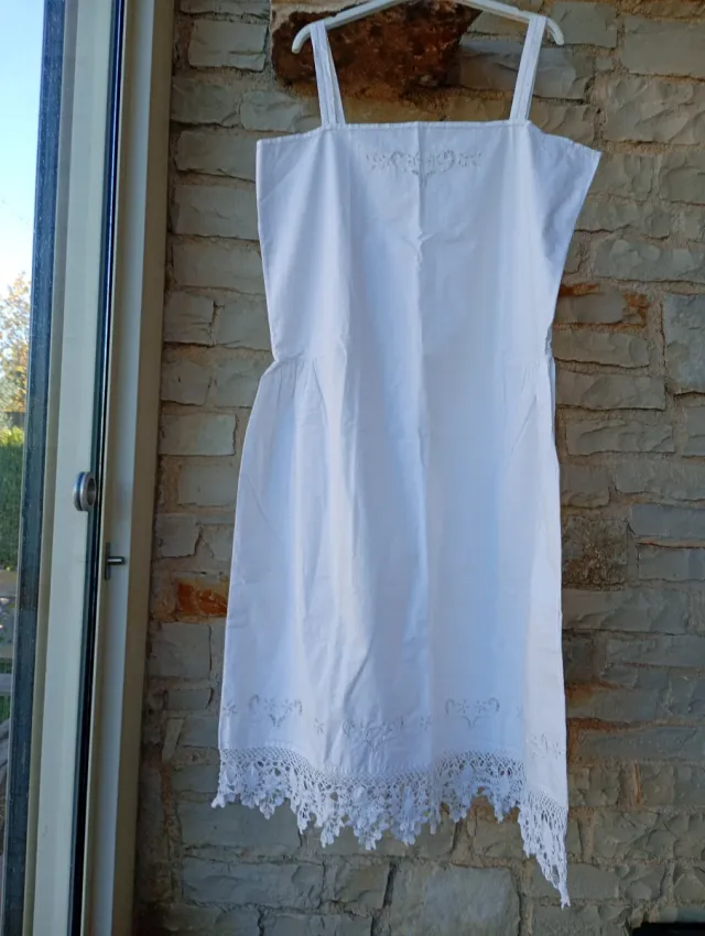 Dettagli del prodottoDeliziosa sottoveste d'epoca, realizzata in puro cotone con dettagli ricamati a mano.