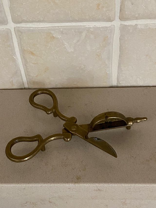 Dettagli del prodottoAntiche forbici in ottone spegni candela vintage provenienti da un recupero di una vecchia casa di campagna. Splendido oggetto ad uso decorativo. Le foto sono parte integrante della descrizione. Oggetto visto e piaciuto da documentazione fotografica e nello stato attuale delle condizioni di uso sempre da documentazione fotografica.