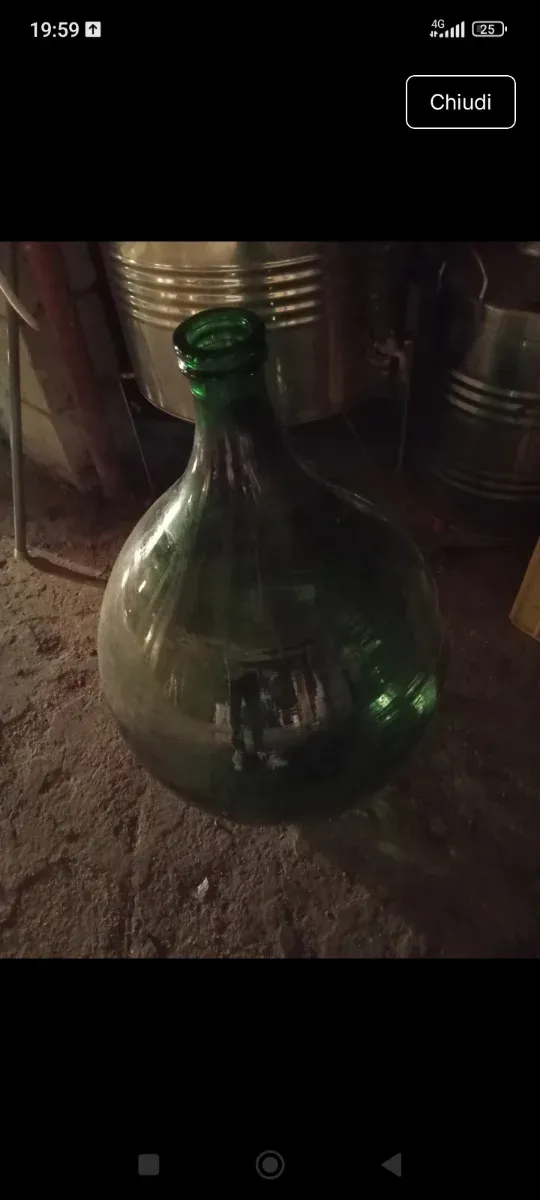Bellissima damigiana antica in vetro verde, perfetta per decorare o per conservare di litri 50.(Spedizione solo con Bartolini). - Materiale: Vetro - Colore: Verde - Stile: Antico