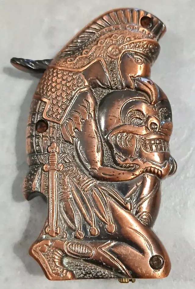 Antico Accendino in Rame e Ottone da Collezione Teschio Morte Vintage