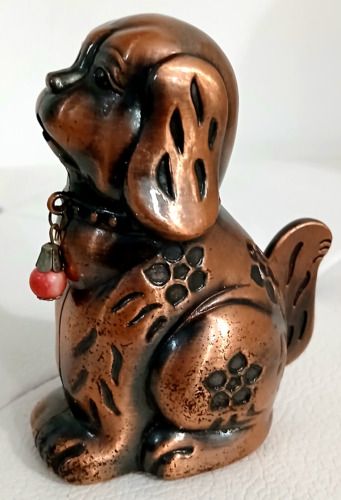 Antico Accendino in Rame Ottone da Collezione Cane Vintage