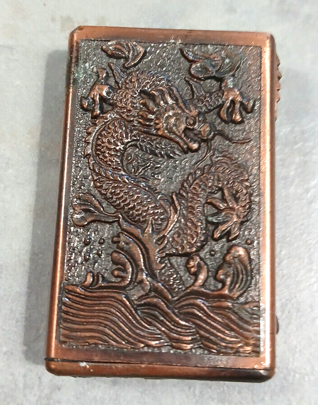 Antico Accendino Rame Ottone Drago Cinese Collezione Vintage In buone condizioni come da foto