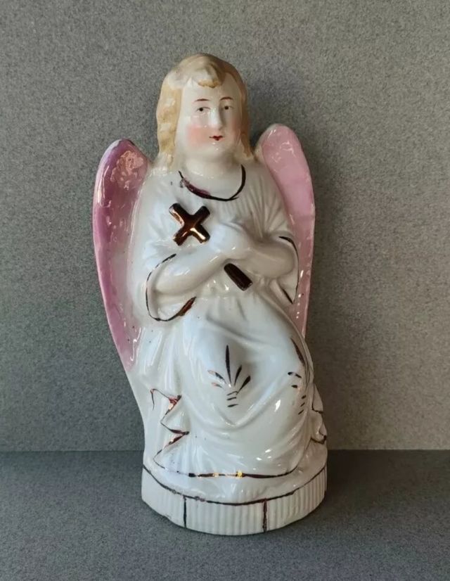 Dettagli del prodottoAntico angelo in biscuit lucido, altezza 14 cm.