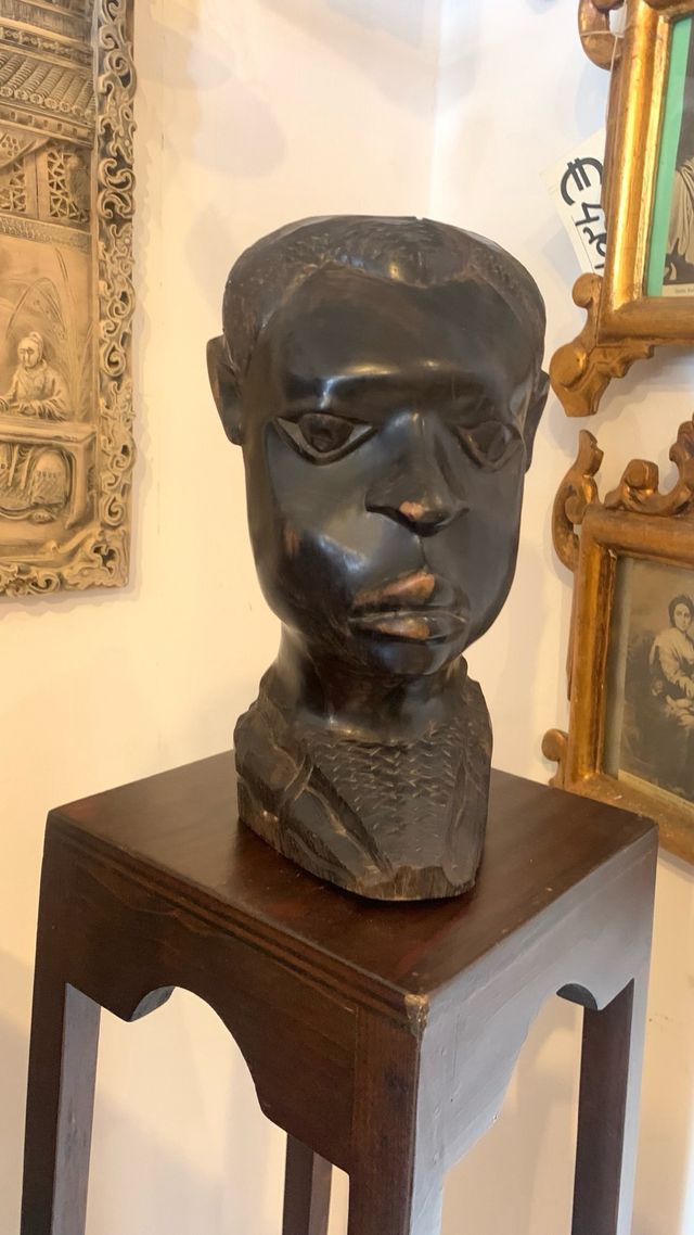 Antico busto intagliato in legno di ebano primi 900 provenienza Africa centrale altezza 26 cm peso 3 kg