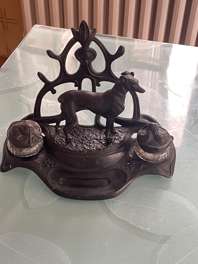 Antico calamaio da scrivania in bronzo