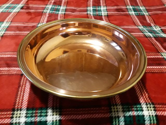 Misure diametro 26cm e altezza 6cm, peso 688 gr, il materiale potrebbe essere alpacca o ottone, ma non ne sono certo, antico ma ben conservato, vendo a euro 15,00.