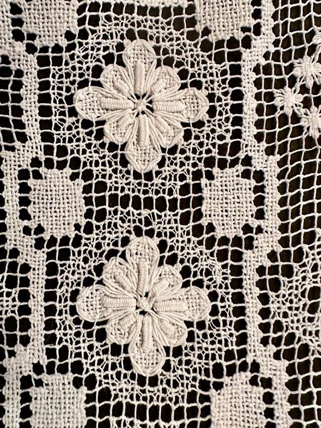 antico centrotavola fatto a mano in cotone bianco 43x26 cm