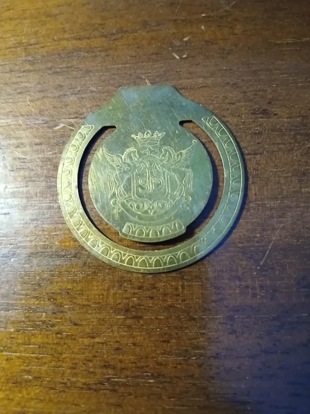 Dettagli del prodottoFermasoldi d'epoca con un elegante stemma inciso al centro. Un pezzo unico con dettagli raffinati.