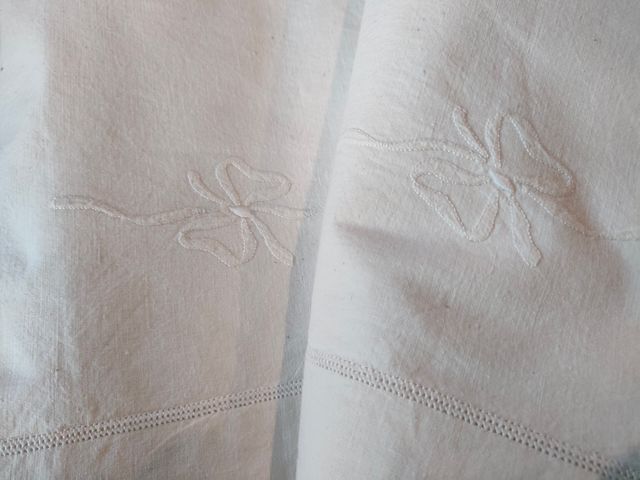 Antico lenzuolo matrimoniale ricamato +
