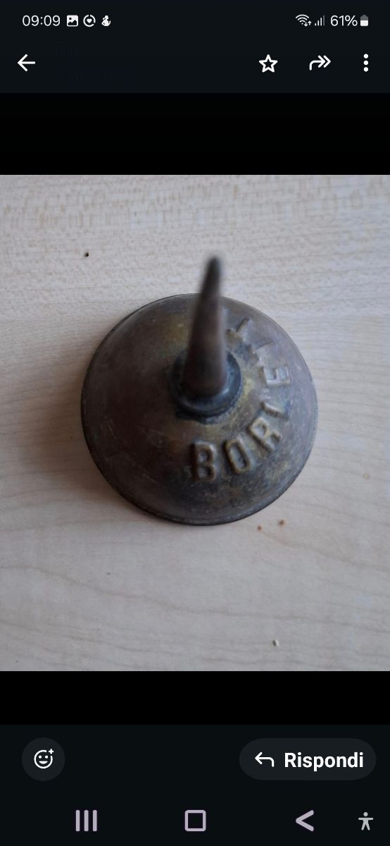 Antico oliatore Borlotti per macchina da cucire. Oliatore alto 9 cm e diametro 5 cm.