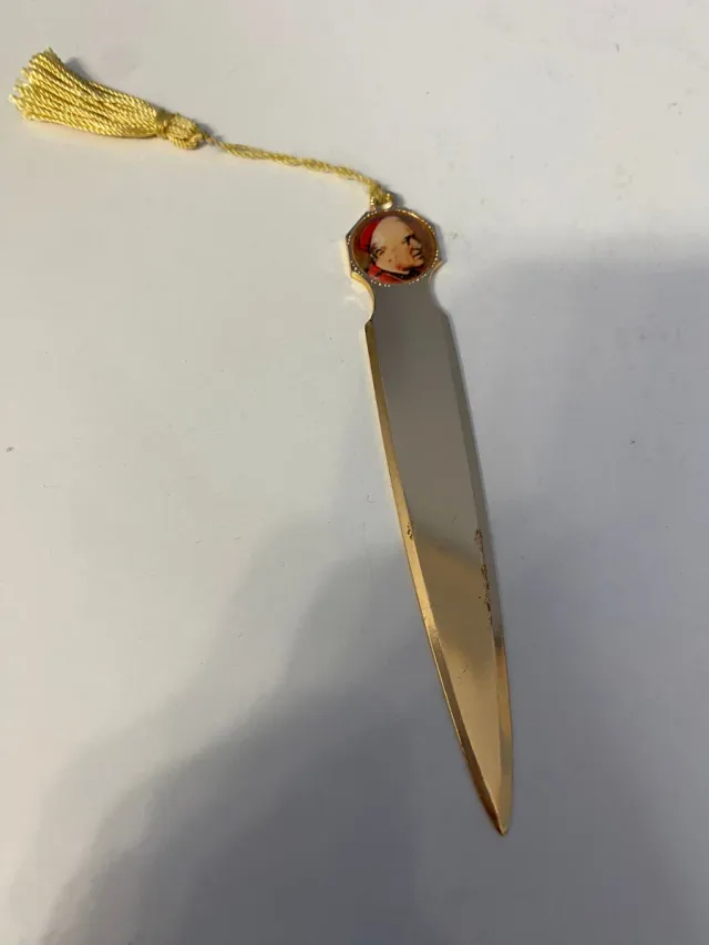 Dettagli del prodottoElegante tagliacarte d'epoca con un'immagine papale.