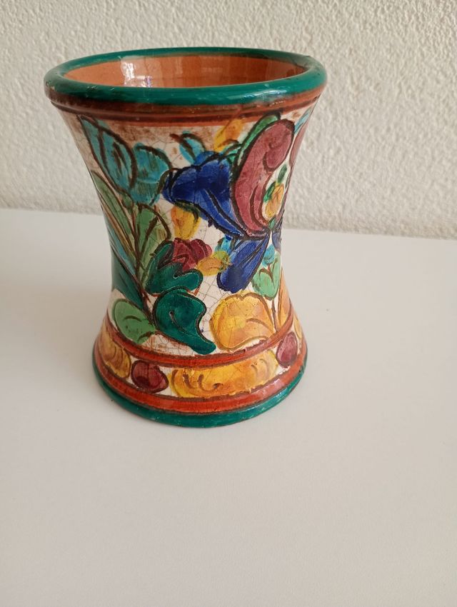 Antico Vaso Piccolo Vaso in Ceramica Smaltata Dipinto a Mano Vintage In buone condizioni come da foto
