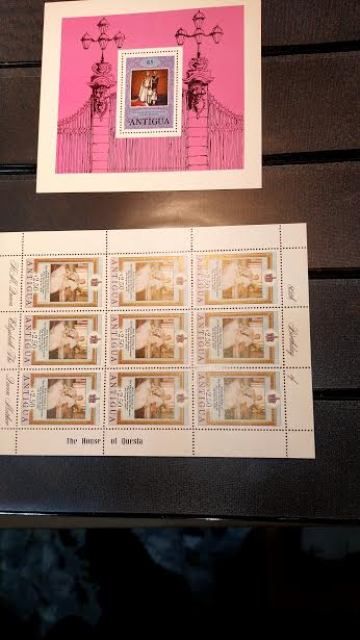(cif1)FOGLIETTI ANTIGUA 1979 PESCI 1 EURO-1980 UCCELLI 2 EURO-1977 GIUBILEO 1 EURO
