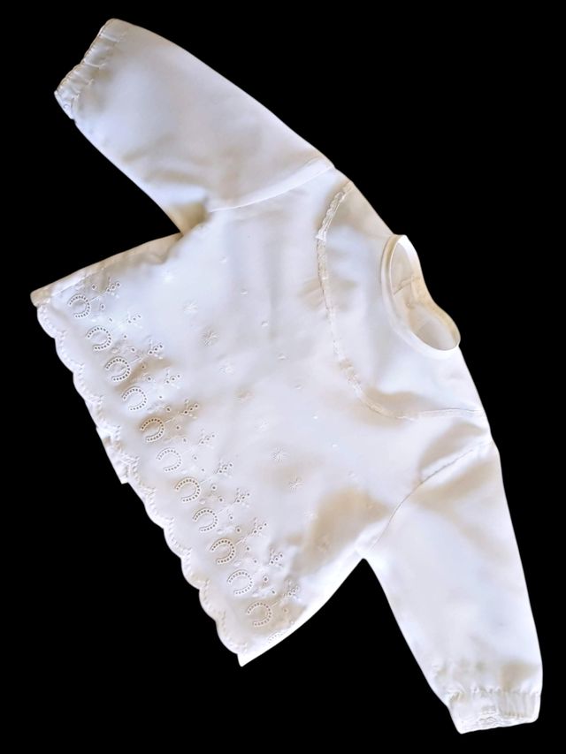 Dettagli del prodottoCamicia bianca antica ricamata con bambole Biscuit Jumeau.