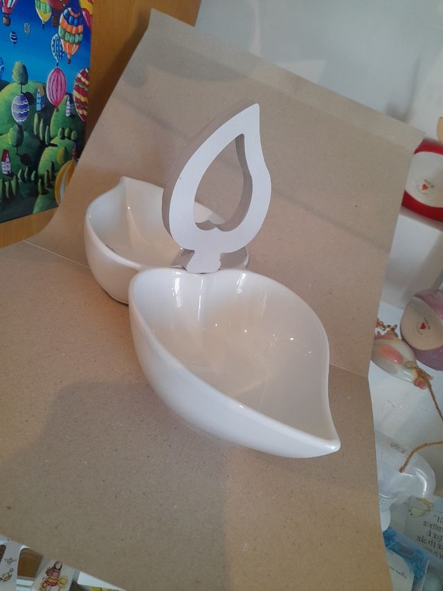 piccola antipastiera, portasalatini in porcellana, con manico in legno, cm 23