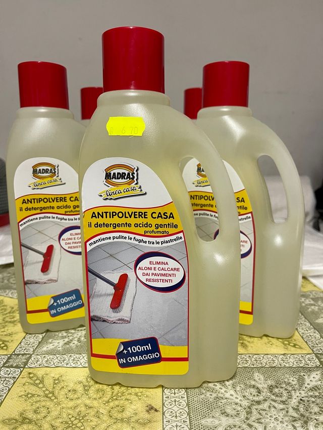 5 flaconi da 1 L cadauno di detersivo per pavimenti antipolvere Madras 2 euro cad