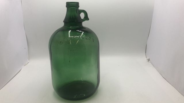 Fiasco in vetro verde da 1 gallone. In perfette condizioni. Altezza 30 cm, larghezza 14,5 cm