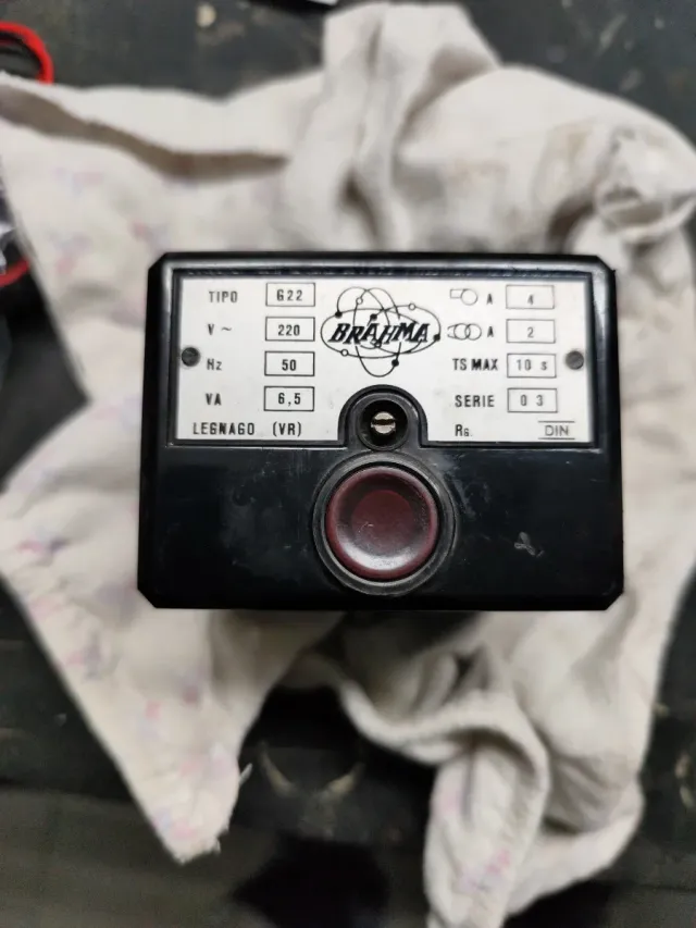 Apparecchiatura Brahma modello G22. - Tipo: 622 - Tensione: 220 V~ - Frequenza: 50 Hz - VA: 6,5 - Corrente: 4 A - Corrente: 2 A - TS MAX: 10 s - Serie: 03 - Legnago (VR)