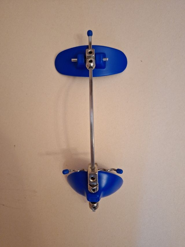 Dettagli del prodottoApparecchio di ortodonzia dentale regolabile per adattarlo al viso. Va fissato con degli elastici che non sono compresi che lo fissano al mento e alla fronte e comunque va regolato da un esperto, odontotecnico o dentista. In buone condizioni. Utilizzabile come modello didattico o per collezionisti del settore. Poco usato. Igienizzato. Lunghezza 21 cm. Misure del prodotto