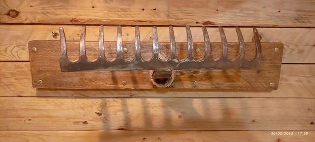 Dettagli del prodottocarino e unico appendiabiti da materiale riciclato rastrello e legno verniciato con colore all'acqua misura 51cm