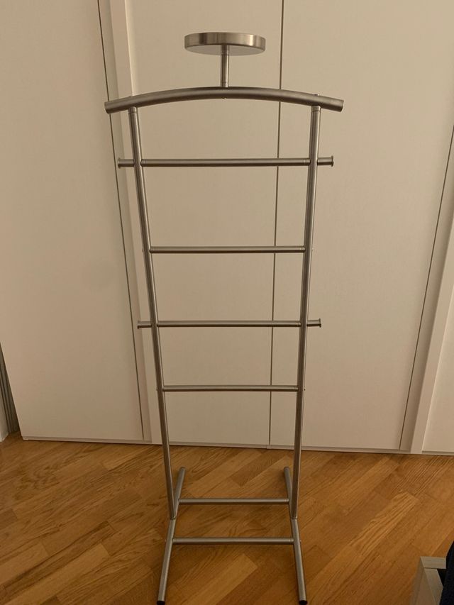 Dettagli del prodottoIndossatore, inox, 128 cm. Ganci sui lati per cinture, cravatte o borse; vassoio per appoggiare l'orologio, i gioielli o altri piccoli oggetti.