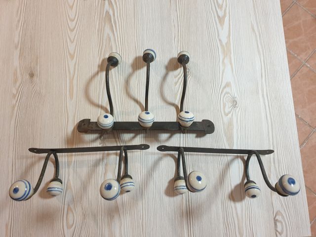 Appendi abiti in ferro stile shabby. Il prezzo richiesto per i tre pezzi è 45 €
