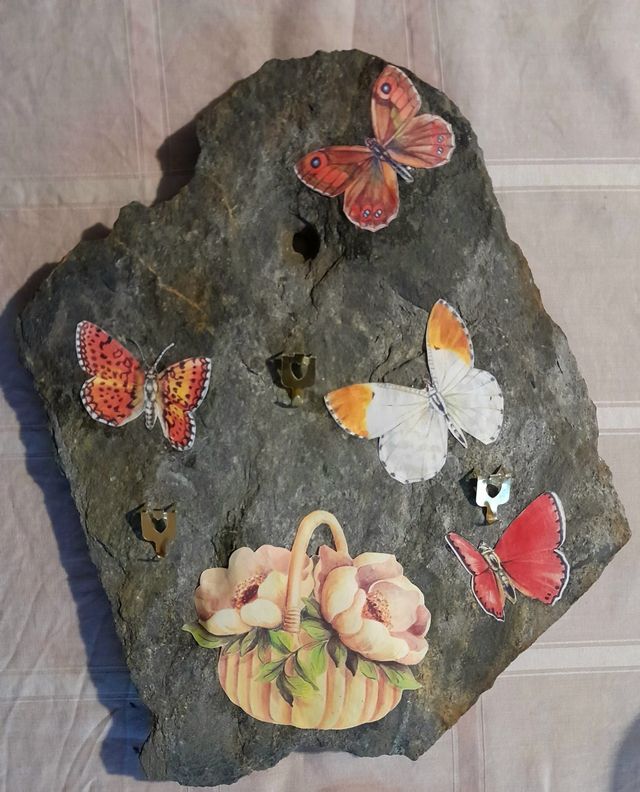 appendichiavi in ardesia con decoupage impermeabilizzato