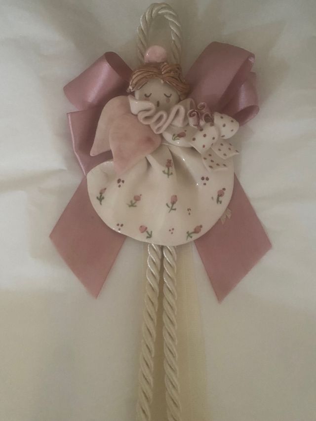 Appendino in ceramica bianca e rosa con piccoli fiorellini ideale per cameretta di bimba