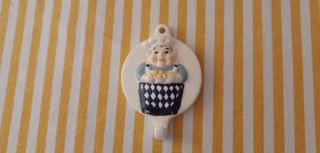 Dettagli del prodottoAppendino per strofinaccio con soggetto cuoco,in rilievo. Ceramica. Mai usato. Si può appendere con adesivo o attaccare con la calamita, rimuovere l'adesivo. Adatto alla propria cucina o per un locale ,anche come originale regalo. Misure e dettagli in foto, guardarle tutte.