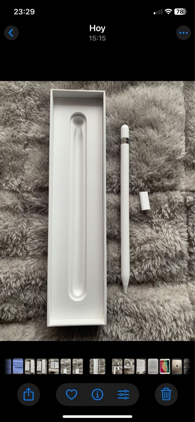 Dettagli del prodottoMatita digitale Apple Pencil. Con pochissimo utilizzo e ben curata. Si consegna nella sua confezione originale. Funziona perfettamente. Design bianco ed elegante. Si include tutto ciò che appare nelle foto. La descrizione è stata tradotta automaticamente.