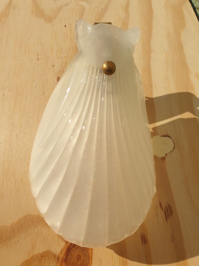 Dettagli del prodottoElegante applique in pesante vetro opalescente modellato a forma di conchiglia rigata (tipo conchiglia del pettine).