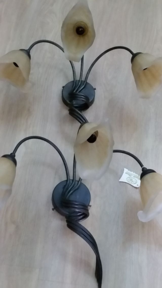 applique 2 luci in ferro battuto e murano 2 pezzi