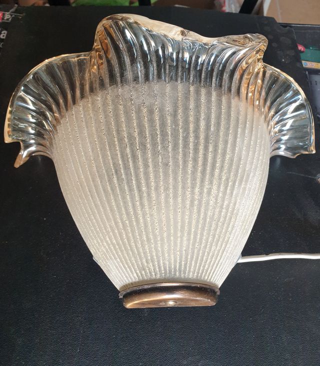 Abat jour in vetro scavo (ruvido) con scanalature ,modellato a forma di un calice di calla . Monta una lampada E27 . Impianto testato e funzionante
