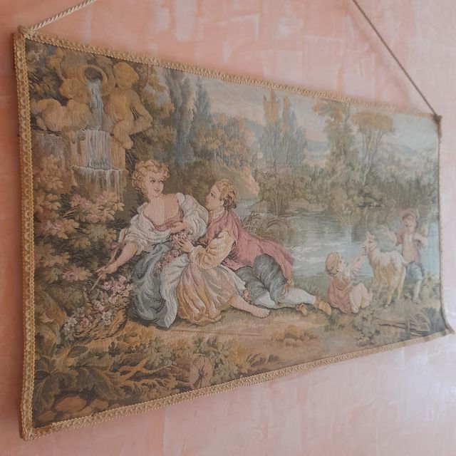 arazzo originale gobelin produzione italiana E. Dalla Benetta, misure 44x79cm, in ottimo stato, attualmente montato su listelli in abete.