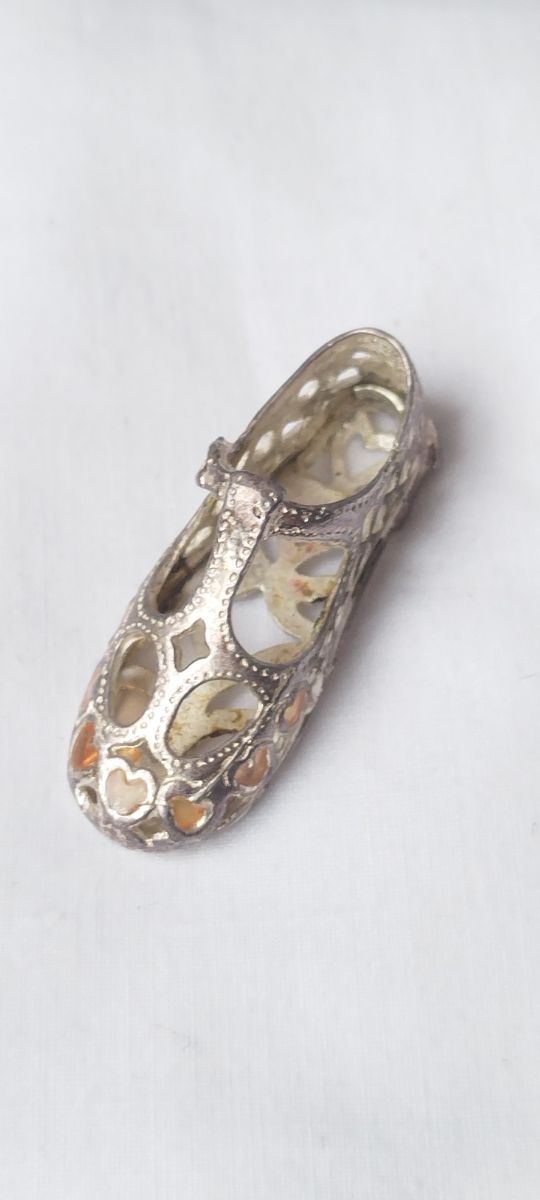 Dettagli del prodottoArgento 800 scarpetta con pietre a forma di cuore. Vintage. Peso 8 grammi
